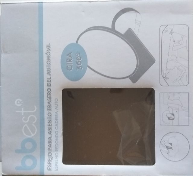 Detalles del productoEspejo para colocar en el asiento trasero del automovil para que el conductor pueda ver al niño facilmente por el retrovisor. Se ajusta con un arnes al reposacabezas.Marca bbest. Recogida en Puzol o alrededores. Se hacen envios