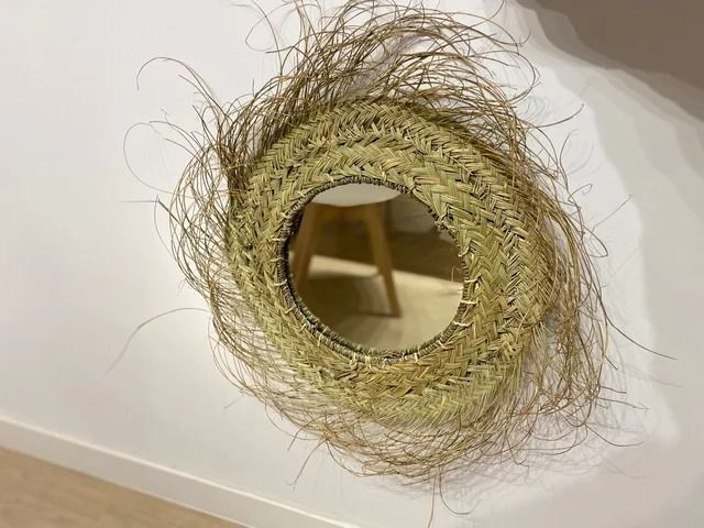 Espejo redondo artesano de esparto con flecos. Disponible en varios tamaños. Medidas: - 30cm de diámetro 25€ - 50cm de diámetro 30€