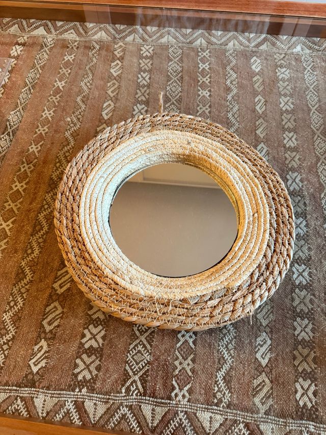 Espejo redondo decorativo de mimbre
