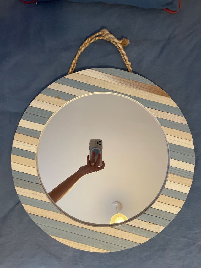 Espejo, redondo madera, rayas marineras