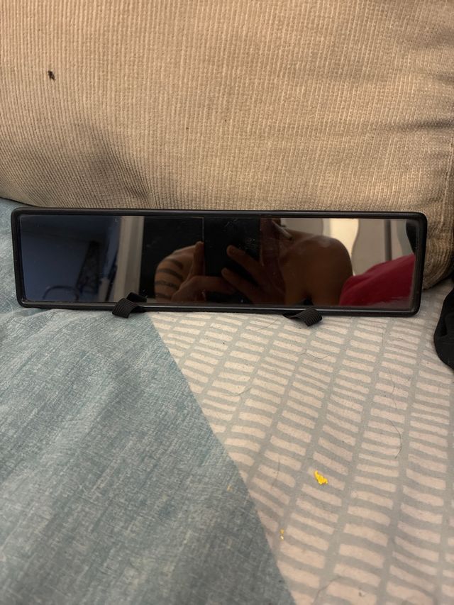 Espejo retrovisor interior para coche. Se sujeta con cintas elásticas. - Diseño rectangular. - Marco negro.