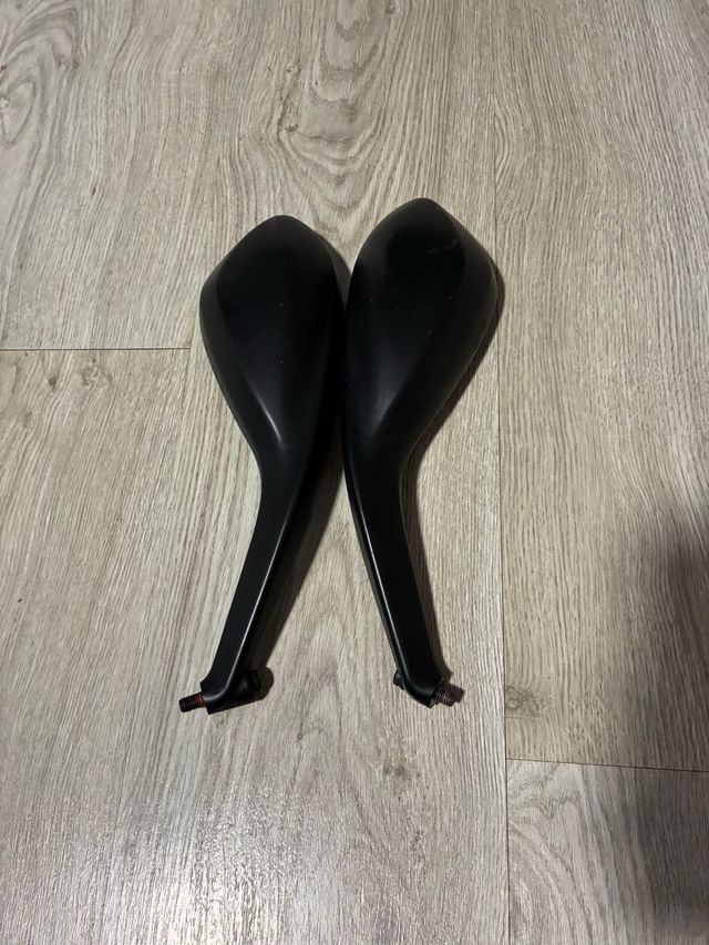 Par de espejos negros para moto Ducati. Diseño aerodinámico y elegante. - Color: Negro mate. - Material: Plástico ABS y metal. - Incluye tornillería para montaje.