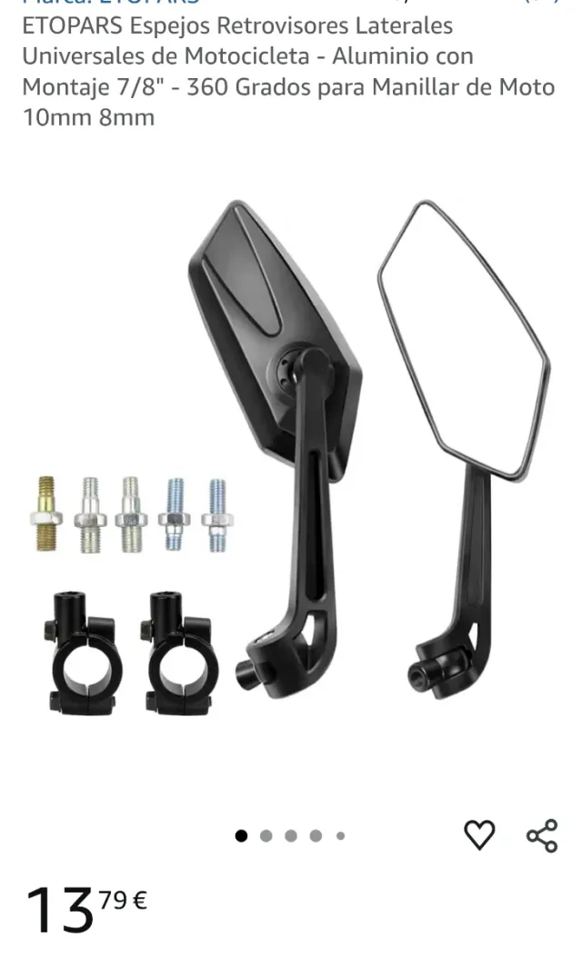 Detalles del productoEspejos retrovisores laterales universales para motocicleta.