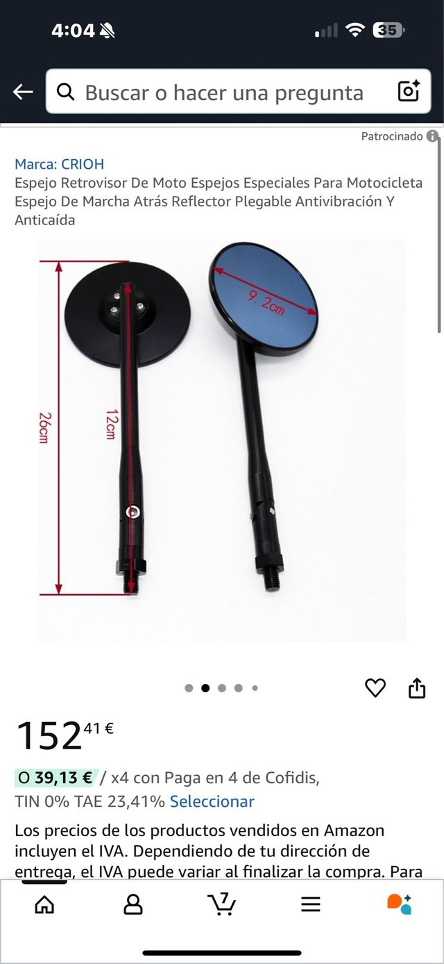 Detalles del productoEspejos retrovisores para motocicleta, plegables y antivibración. Ideales para una conducción segura.