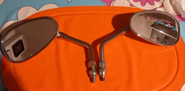 Detalles del productoPar de espejos retrovisores universales para moto con acabado cromado, rosca 10, Palma.