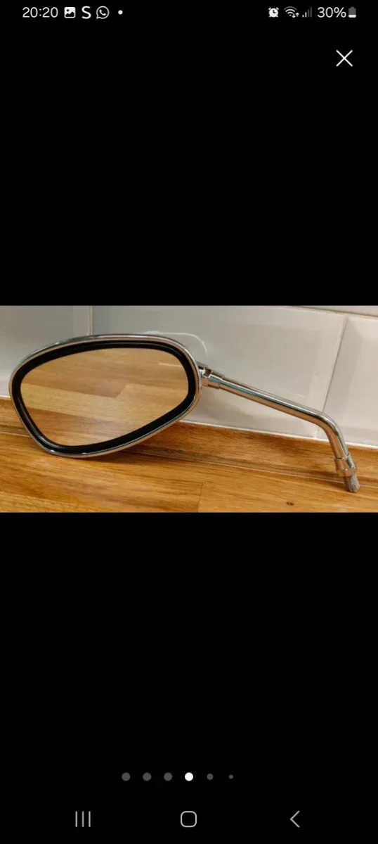 Par de espejos retrovisores para motocicleta con acabado cromado. - Diseño ovalado. - Brazo metálico ajustable. - Compatibles con la mayoría de modelos de moto.