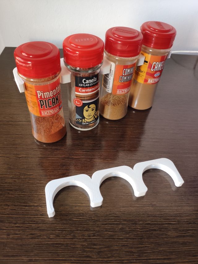 Detalles del productoEspecieros para caravana, impresos en 3D Material PETG. Varios colores. Se puede hacer para tantos botes como se quiera. Precio por bote. Se puede mandar por correo normal