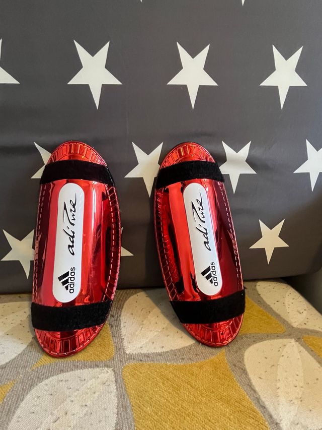 Espinilleras Adidas Adipure. Muy poco uso, estan como se ve en la foto, sin la tira para atarlas ni tobilleras. Muy comodas y ligeras.