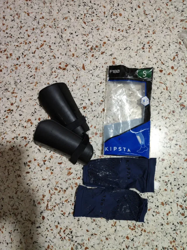 Set de espinilleras de la marca Kipsta. - Modelo F180. - Talla S. - Color azul marino.