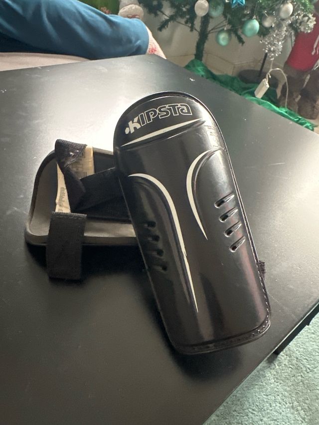 Espinilleras de la marca Kipsta en color negro. Diseñadas para proteger durante la práctica deportiva. - Diseño ergonómico. - Material resistente. - Cierre con velcro.