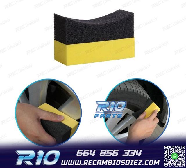 Detalles del productoMóvil: 664 856 334 - Referencia: RLC008070. ESPONJA LAVADO NEUMATICOS Y LLANTAS Medidas: 3.5cm x 10cm x 6 cm Ideal para limpieza y cuidado del vehiculo PRECIO POR UNIDAD