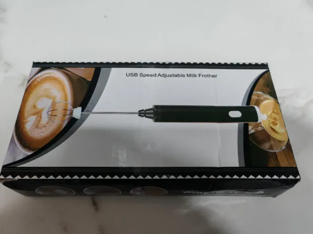 Detalles del productoEspumador de leche recargable por USB con velocidad ajustable. Ideal para preparar bebidas con espuma.