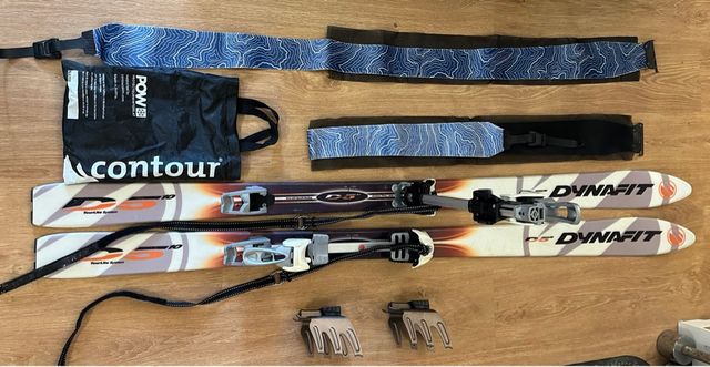 Esqui de travesia Dynafit D5, 158cm, con fijaciones Diamir Experience, pieles de foca nuevas Contour a medida y cuchillas. Poco uso y bien cuidado.