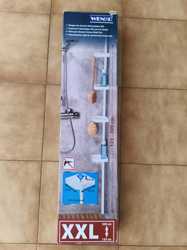 Estantería telescópica para la ducha de la marca Wenko. - Ajustable en altura de 125 a 300 cm. - Incluye 4 bandejas. - Diseño en color blanco.