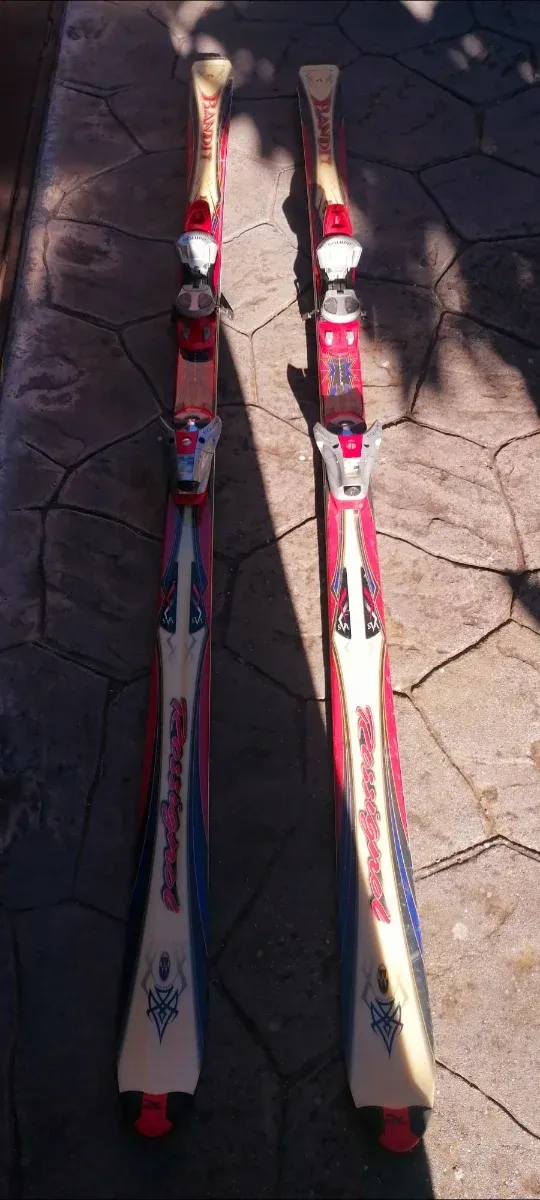 Vendo Esquís alpinos,marca Rosignol,fijaciones Salomon. 100€ - Longitud de 1.85 metros. - Diseño deportivo en colores rojo, blanco y azul.