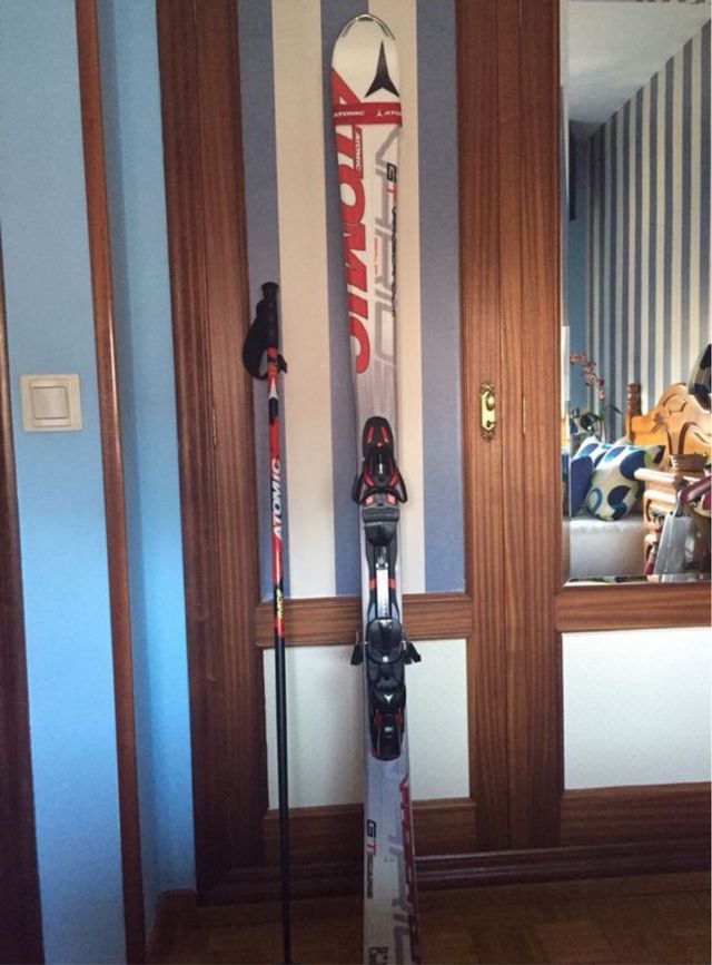 Esquís Atomic en buen estado, listos para la nieve. Incluye un par de bastones a juego. - Marca: Atomic - Incluye 1 par de esquís y 1 par de bastones.