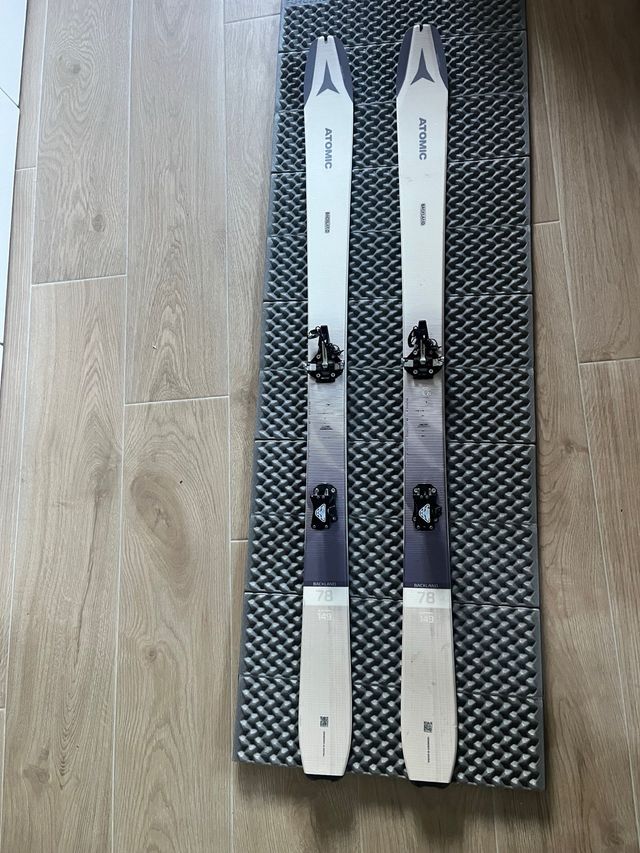 Se venden esquís Atomic Backland 78. - Modelo: Backland 78 - Marca: Atomic - Color: Blanco y gris degradado - Fijaciones incluidas