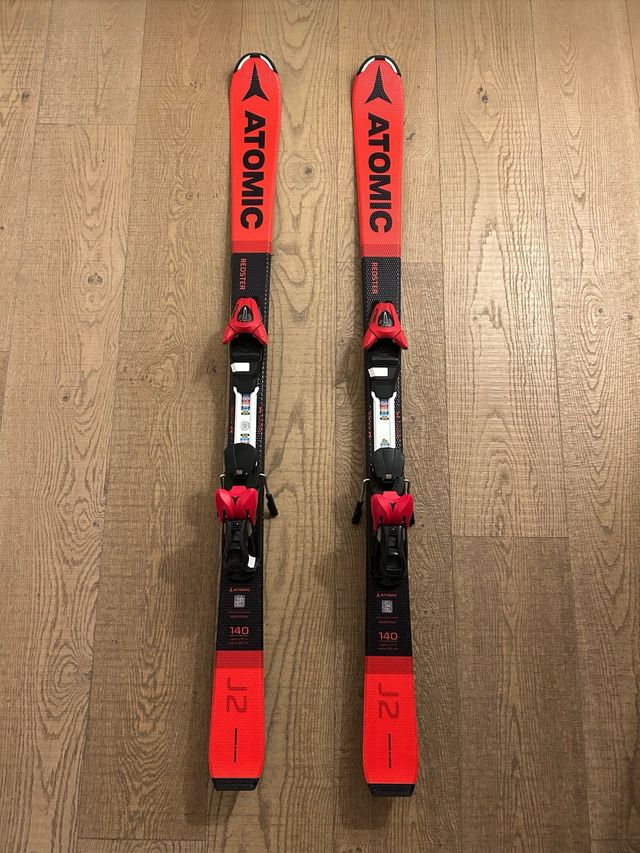 Esquís Atomic Redster J2 de 140 cm. - Color rojo y negro. - Fijaciones incluidas.
