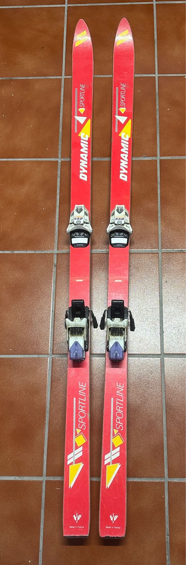 Detalles del productoConjunto de esquís clásicos de la marca Dynamic, modelo Sportline, en color rojo.