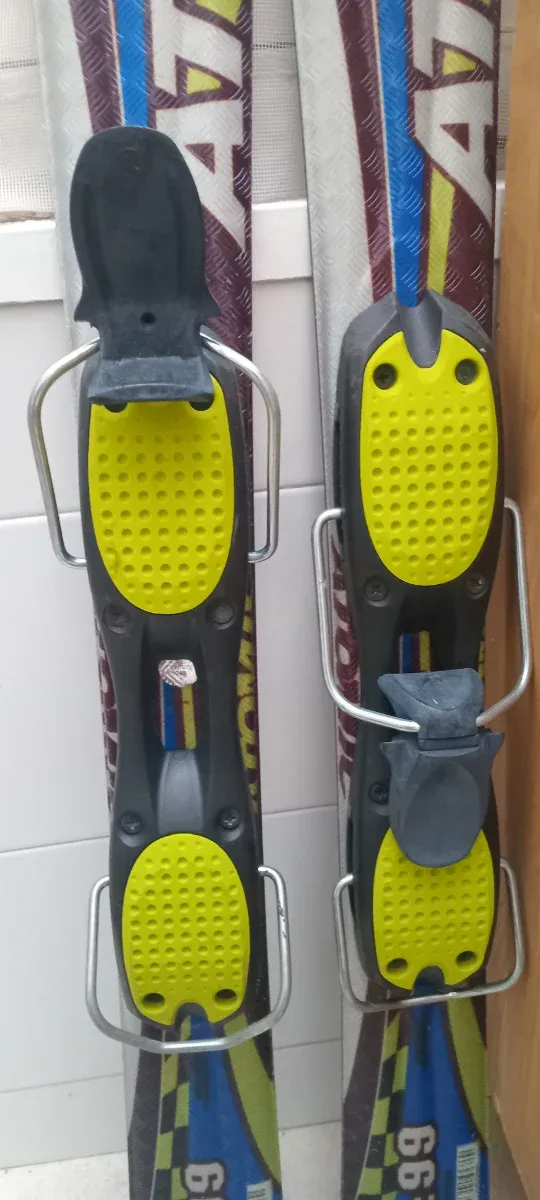 Se venden esquís con fijaciones. - Fijaciones de esquí. - Diseño con detalles en amarillo y negro.
