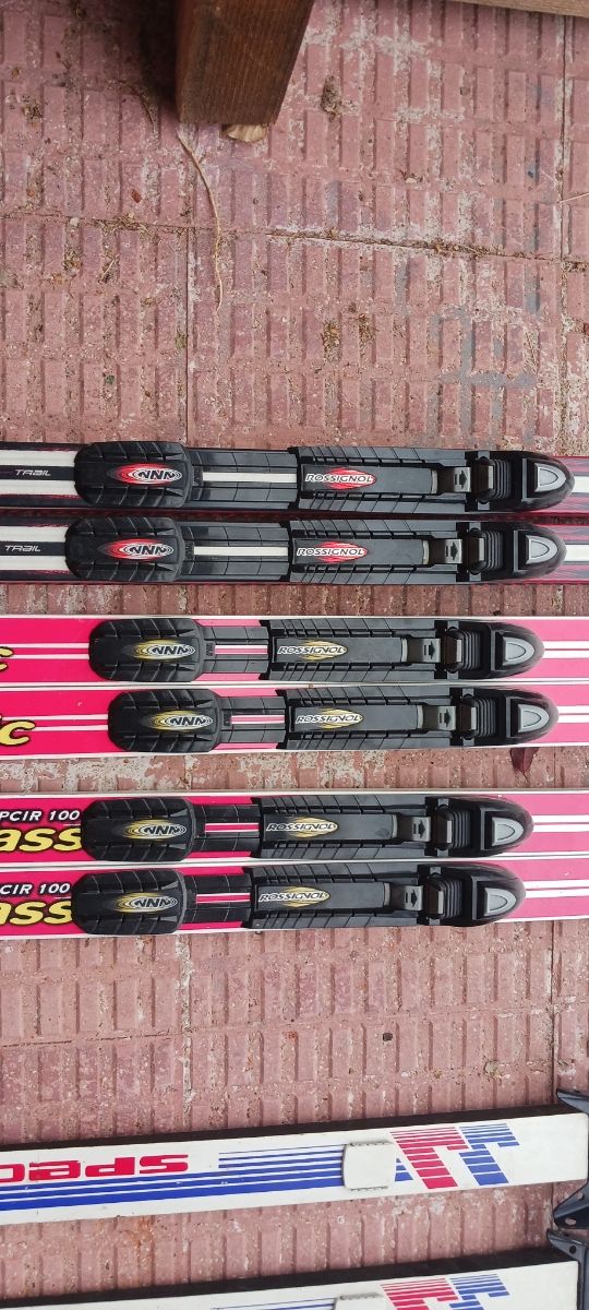 Tres pares de esquis de fondo con fijación NNN Rotefella Regalo esquis de ceras con fijación N75