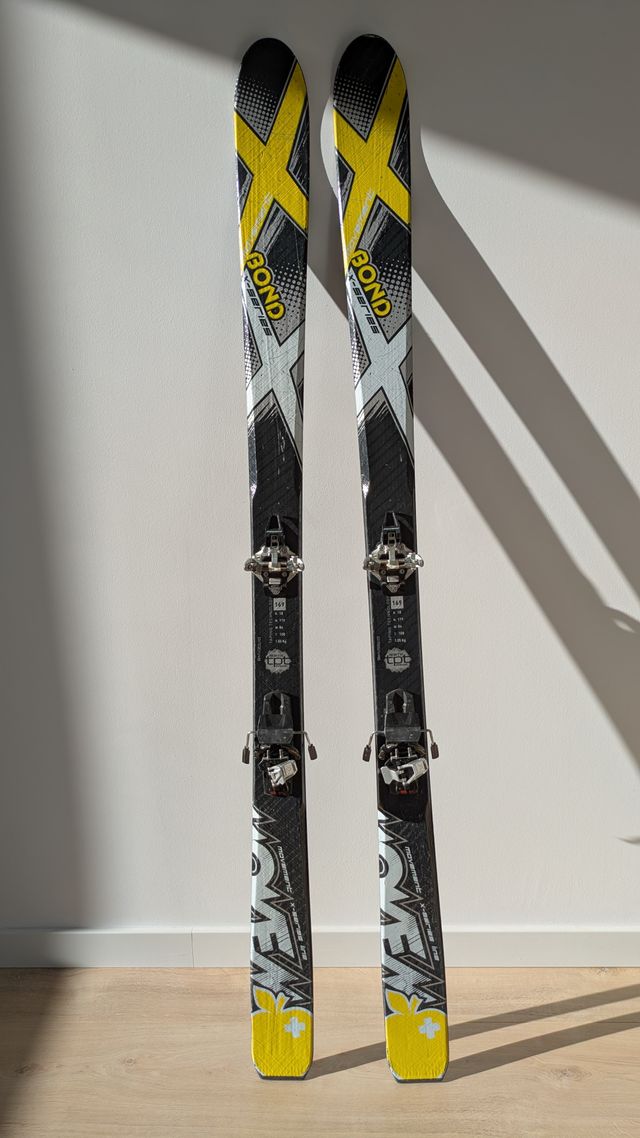 Detalles del productoEsquís de travesía Movement Bond X Series con un diseño llamativo en amarillo y negro.
