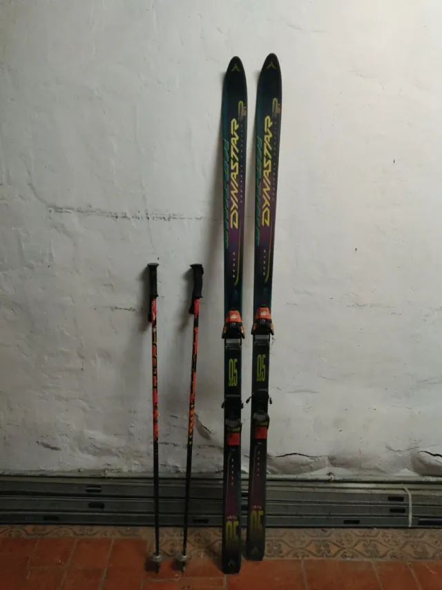 Conjunto de esquís Dynastar con sus bastones. - Esquís Dynastar. - Bastones de esquí.
