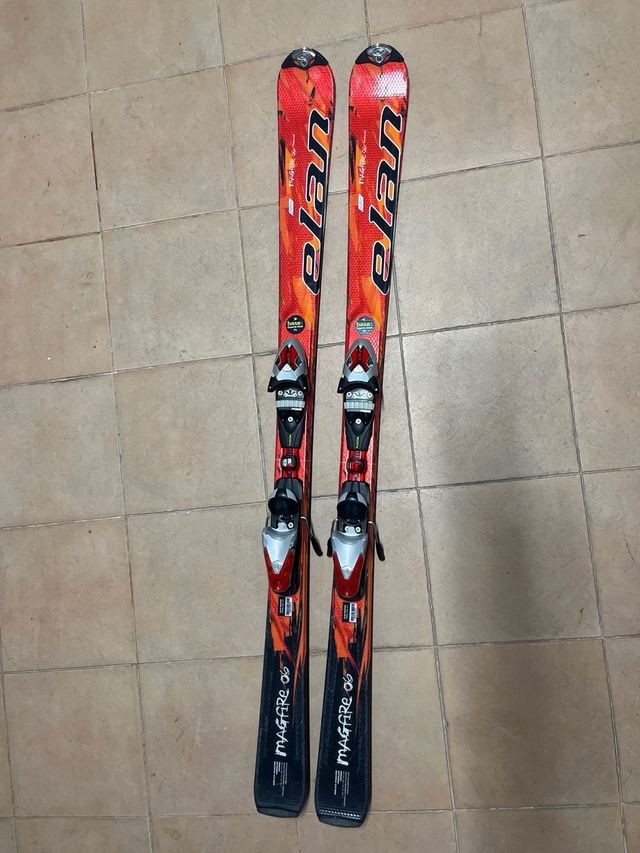 Esquís Elan Magfire 96 en buen estado, listos para disfrutar en la nieve. - Dos esquís Elan Magfire 96. - Fijaciones incluidas. - Diseño rojo y negro.