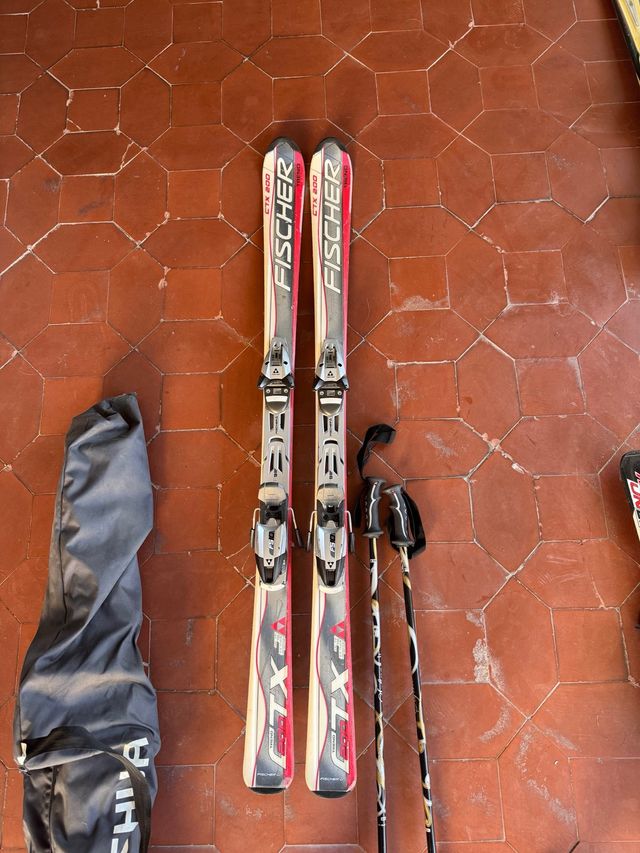 Detalles del productoConjunto de esquís Fischer CTX 800 con sus bastones y funda.