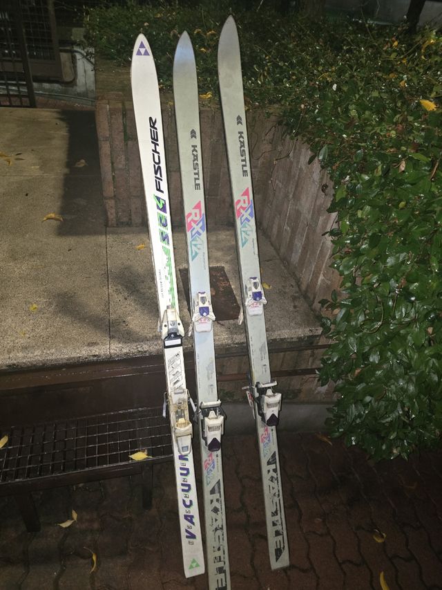 Conjunto de tres pares de esquís, dos de la marca Kastle y uno de Fischer. - Esquís Kastle RXA. - Esquís Fischer. - Fijaciones incluidas.