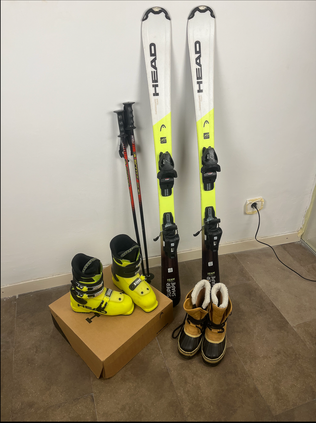 - Esquís Head Super Shape Team 127 cm, año 2023. Botas Head Z 3 pie 230. Palos Scott 85 cm. Descansos Seeland pie 36 EU.