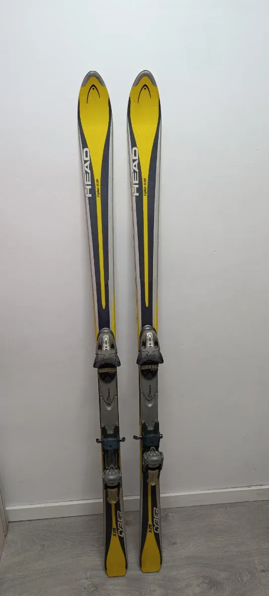 Esquís Head Cyber X20 de 160 cm de longitud. Diseño moderno en amarillo y gris. - Marca: Head - Modelo: Cyber X20 - Longitud: 160 cm - Fijaciones incluidas