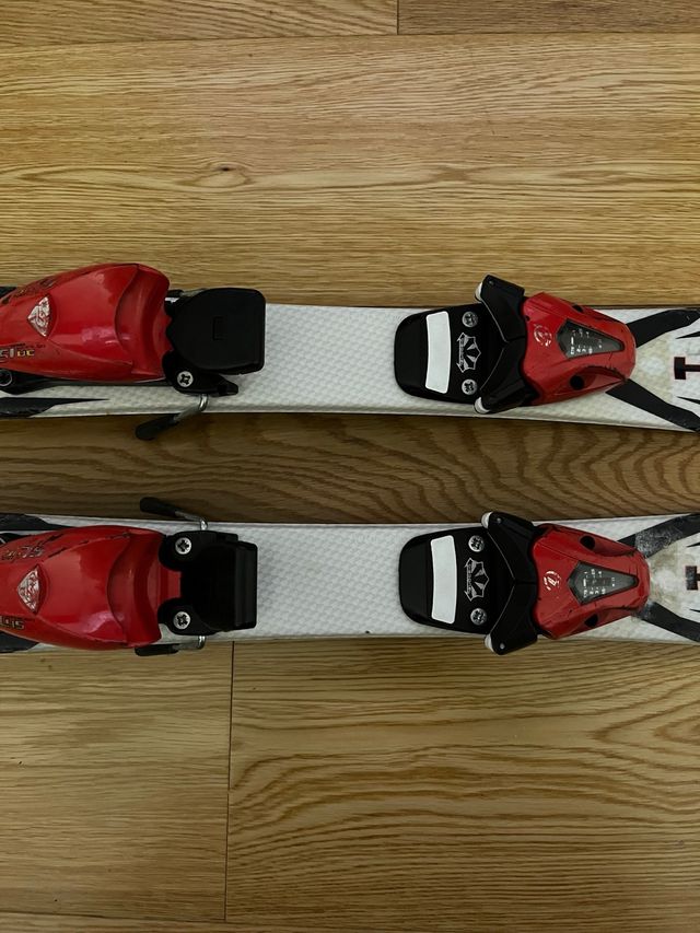 Esquís marca Head para niños de 65 cm de longitud, perfectos para iniciarse en el deporte. - Fijaciones rojas y negras. - Diseño blanco con detalles gráficos.