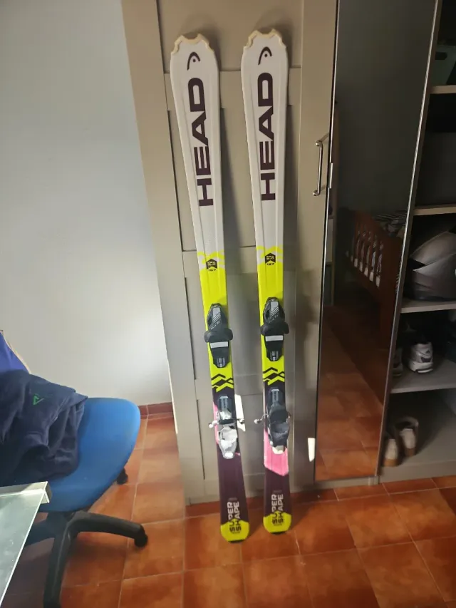 Esquís Head Super Shape de 157cm. - Fijaciones incluidas. - Diseño deportivo en amarillo y blanco