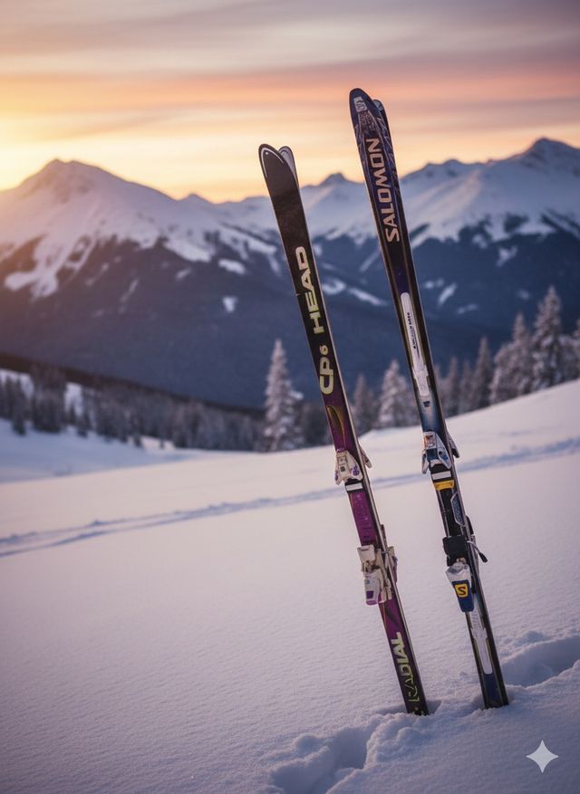 Conjunto de esquís para disfrutar de la nieve. Incluye dos pares de esquís con sus fijaciones. - Esquís HEAD CP6 Radial. - Esquís Salomon. - Fijaciones incluidas.