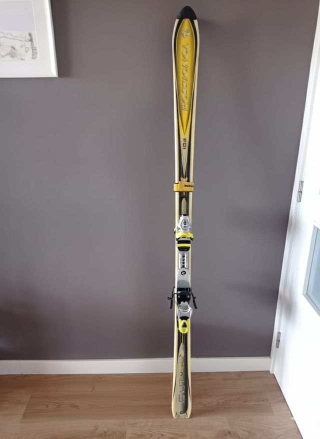 Usados 3 veces. Esquís Rossignol modelo carving CUT V 10.4 con fijaciones FTX 100 longitud 1,75m y bolsa porta botas Rossignol Tienen años pero se han usado en 3 ocasiones.