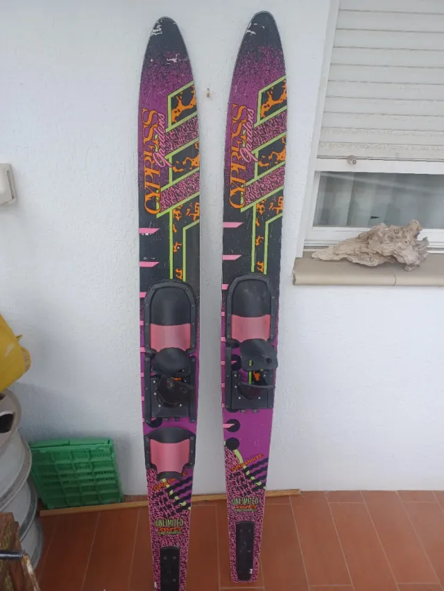 Par de esquís náuticos - Diseño llamativo en morado, negro y naranja. - Fijaciones ajustables. - Modelo Unlimited Graphite.