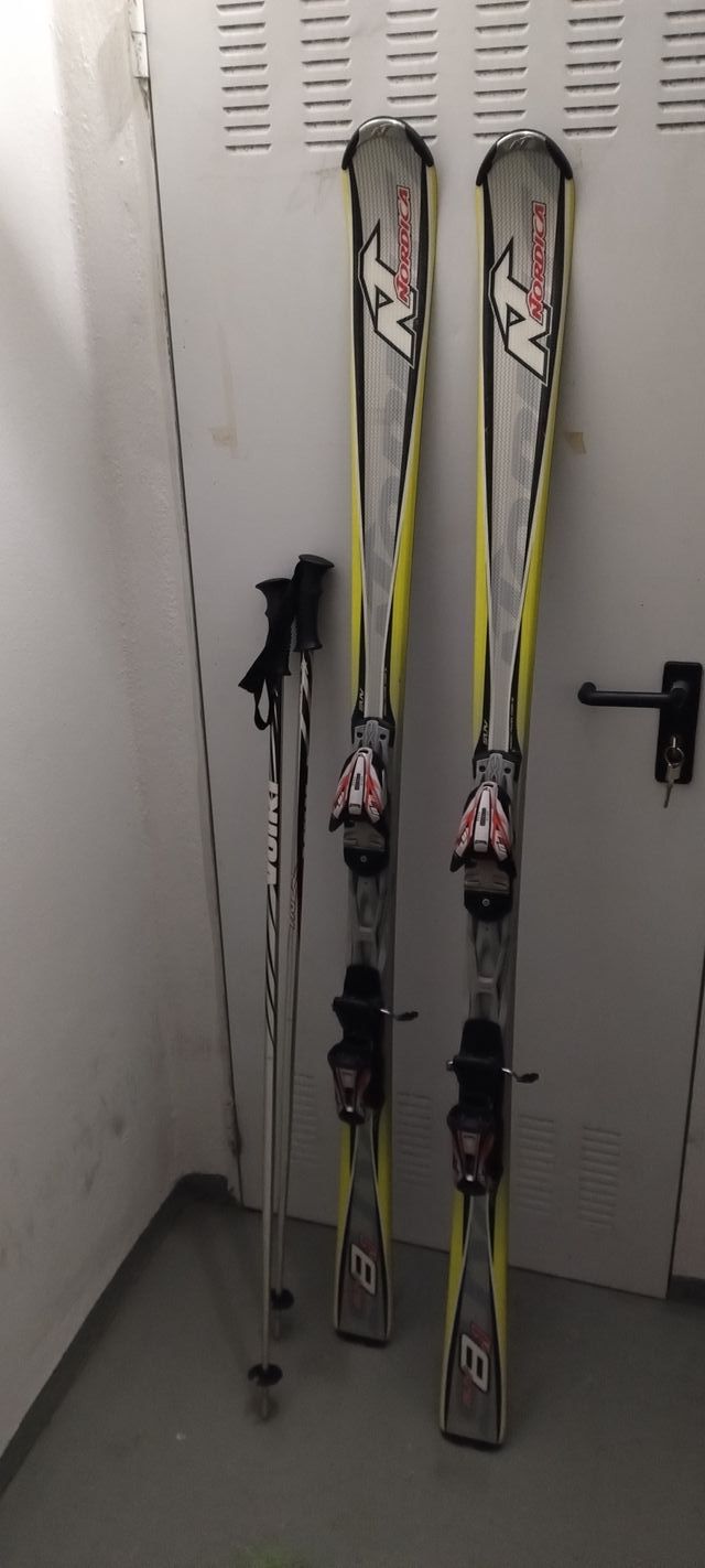Detalles del productoConjunto de esquís Nordica para adulto, listos para la nieve. Incluye bastones.