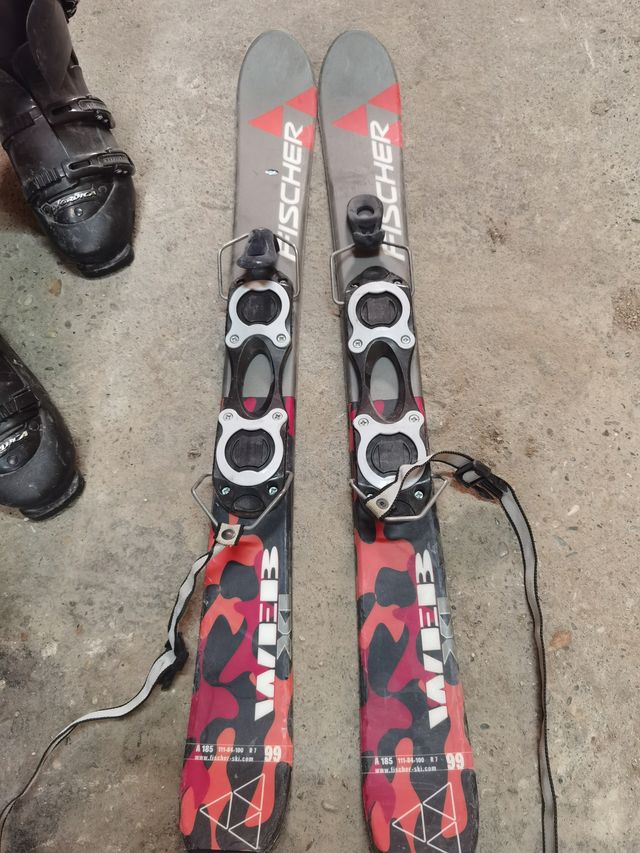 - Dos esquís Fischer, con estampado rojo y negro.