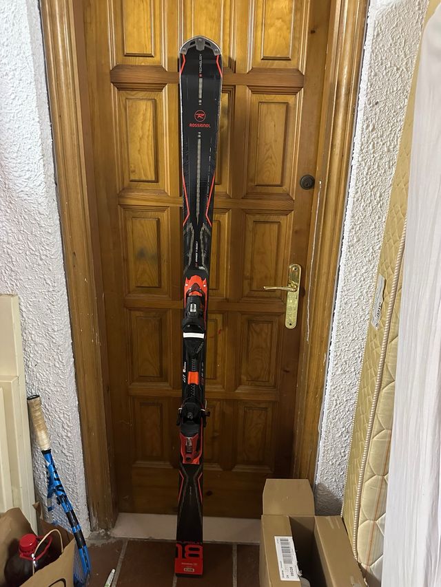 Esquís de la marca Rossignol. - Diseño deportivo en negro y rojo. - Fijaciones incluidas.