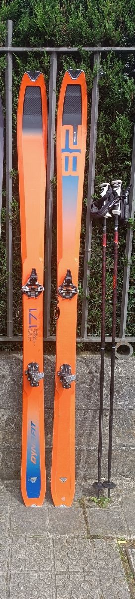 Esquis de travesia dynafit, con suelas y cantos hechos este año, tienen 3temporadas. Esquis, fijaciones, pieles y bastones. Medida 171