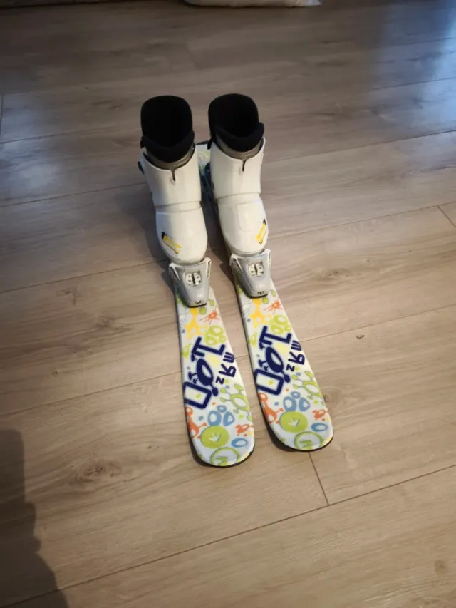Detalles del productoConjunto de esquís y botas para niños pequeños, ideal para iniciarse en el esquí.