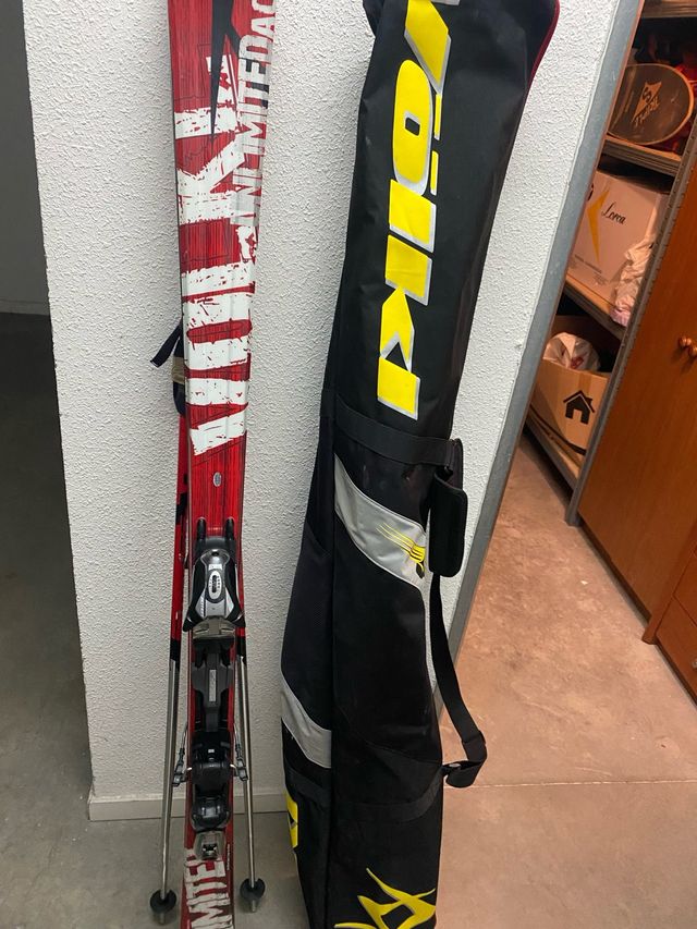 Detalles del productoSe venden esquís con fijaciones y funda para transportarlos.