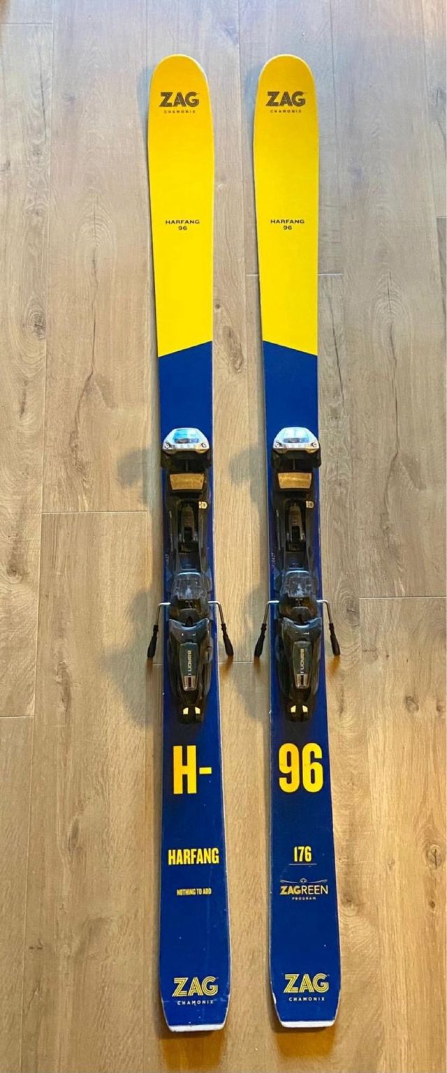 Zag Harfang 96 (176 cm) + Fijaciones Marker Baron EPF 100mm travesía (unos 60 días de uso) + Pieles marca Khola cortadas a medida del esquí (unos 30 días de uso)
