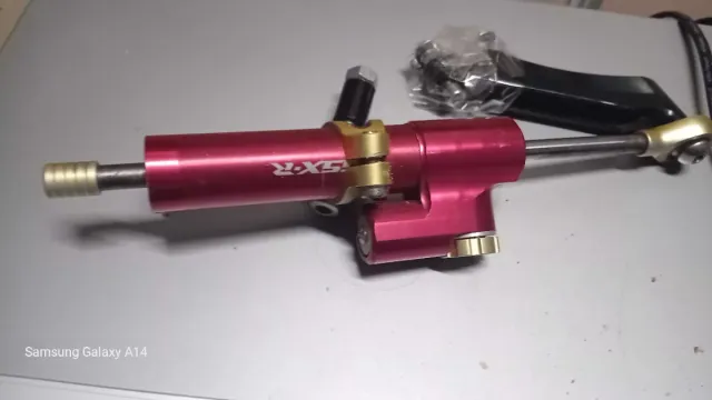 Estabilizador de dirección en color rojo para moto. - Diseño deportivo. - Acabado en aluminio anodizado.