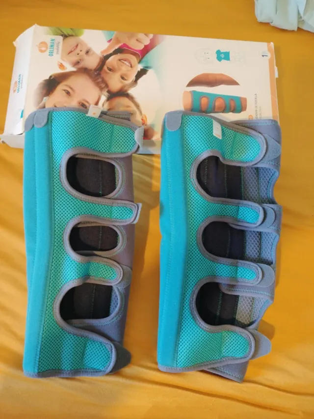 Par de estabilizadores de rodilla Orliman, diseñados para brindar soporte. - Color gris y turquesa. - Cierre de velcro ajustable. - Tejido transpirable.