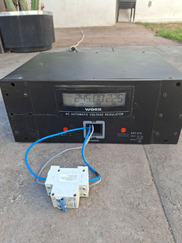 Detalles del productoEstabilizador de corriente WORK para regular el voltaje de forma automática.
