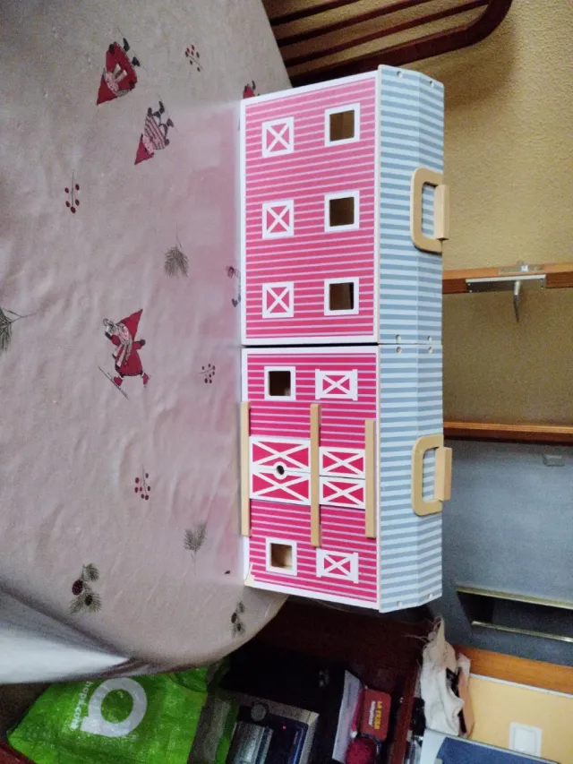 Detalles del productoBonito establo de madera para jugar con muñecas o figuras.