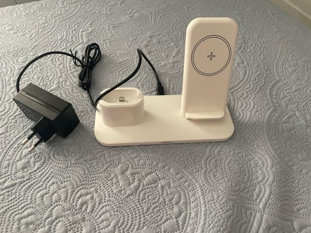 estacion de carga inalambrica para productos de apple. en perfecto estado. Funciona todo. Puedes cargar tu movil, applewatch y airpods al mismo tiempo.