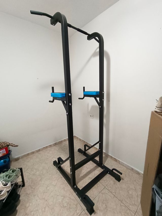 Detalles del productoDrumfit PullUps 4000 Power tower. Multiestación de musculación. Torre de dominadas y fondos. Acolchado y con agarres antideslizantes. Altura ajustable. Máximo peso 120 kg. Medidas del producto
